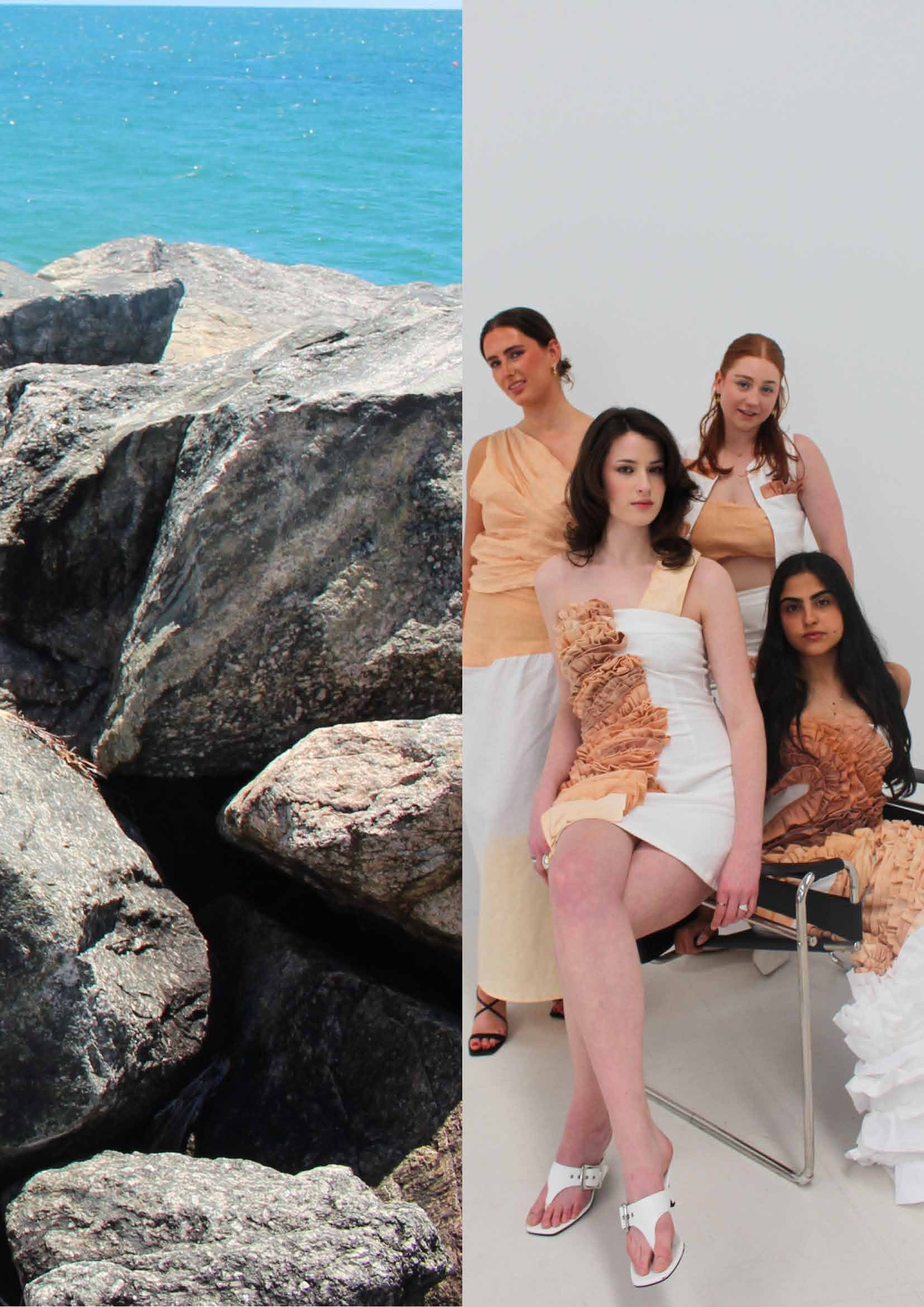 My Collection titled ‘Bleachedzoa’ takes inspiration from coral bleaching and how this is affecting coral ecosystems within the ocean. Taking key inspiration from the textures and forms of different types of coral. The shift from bright textured orange to white helps to communicate the effects that coral bleaching has on coral reefs. Whilst fabric manipulation techniques such as ruffles and natural onionskin dye are used to create and communicate ‘coral-like’ forms and to add texture to garments. The aim of the collection is to bring awareness to coral bleaching, drawing attention to the issue with the hope to create conversation and change.