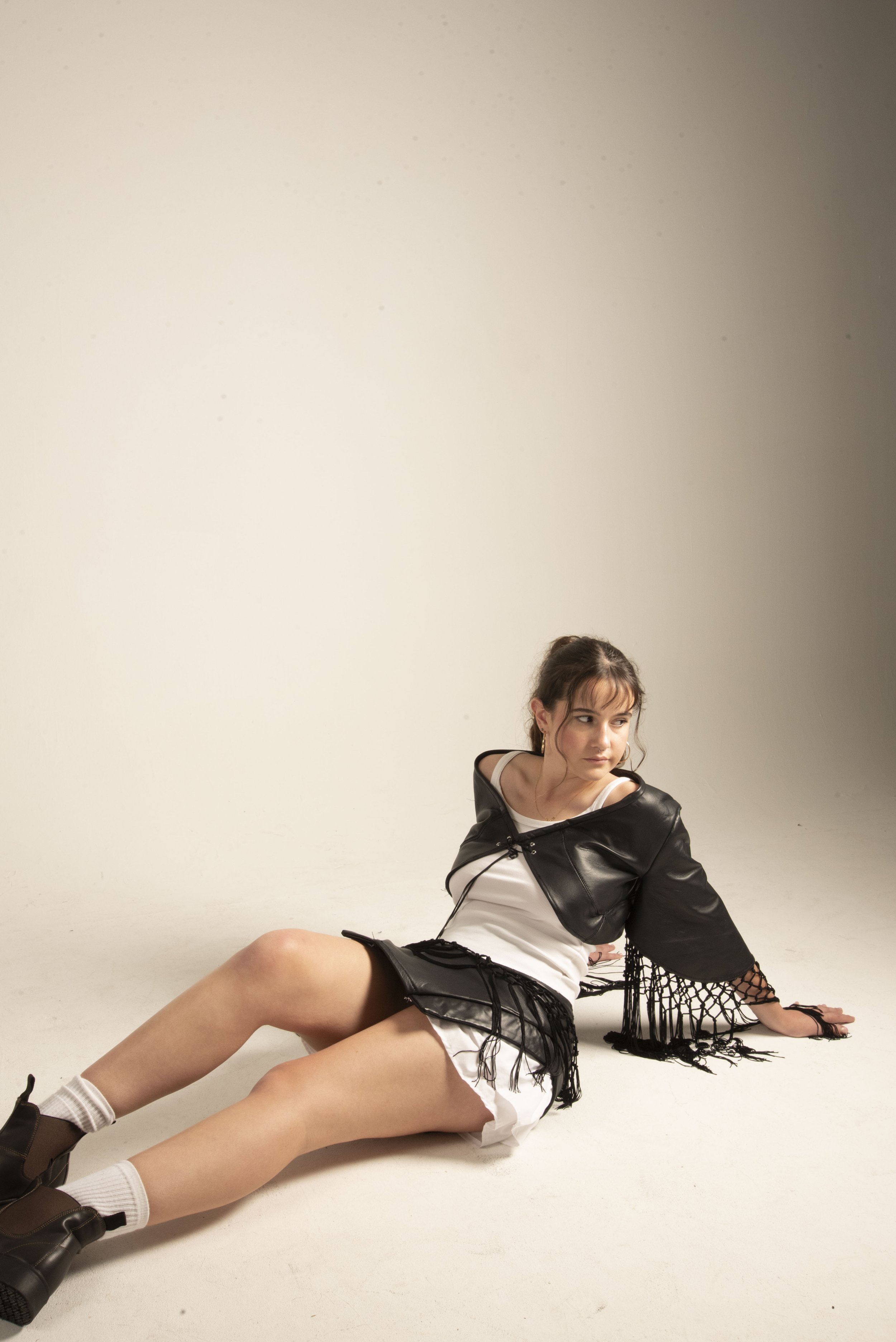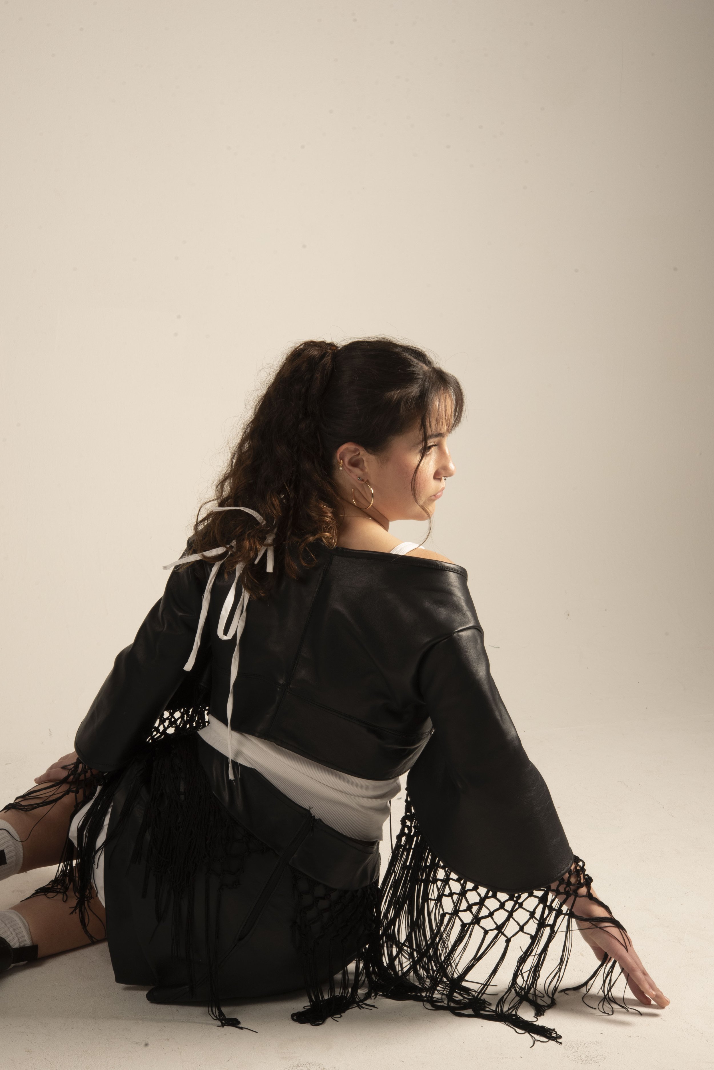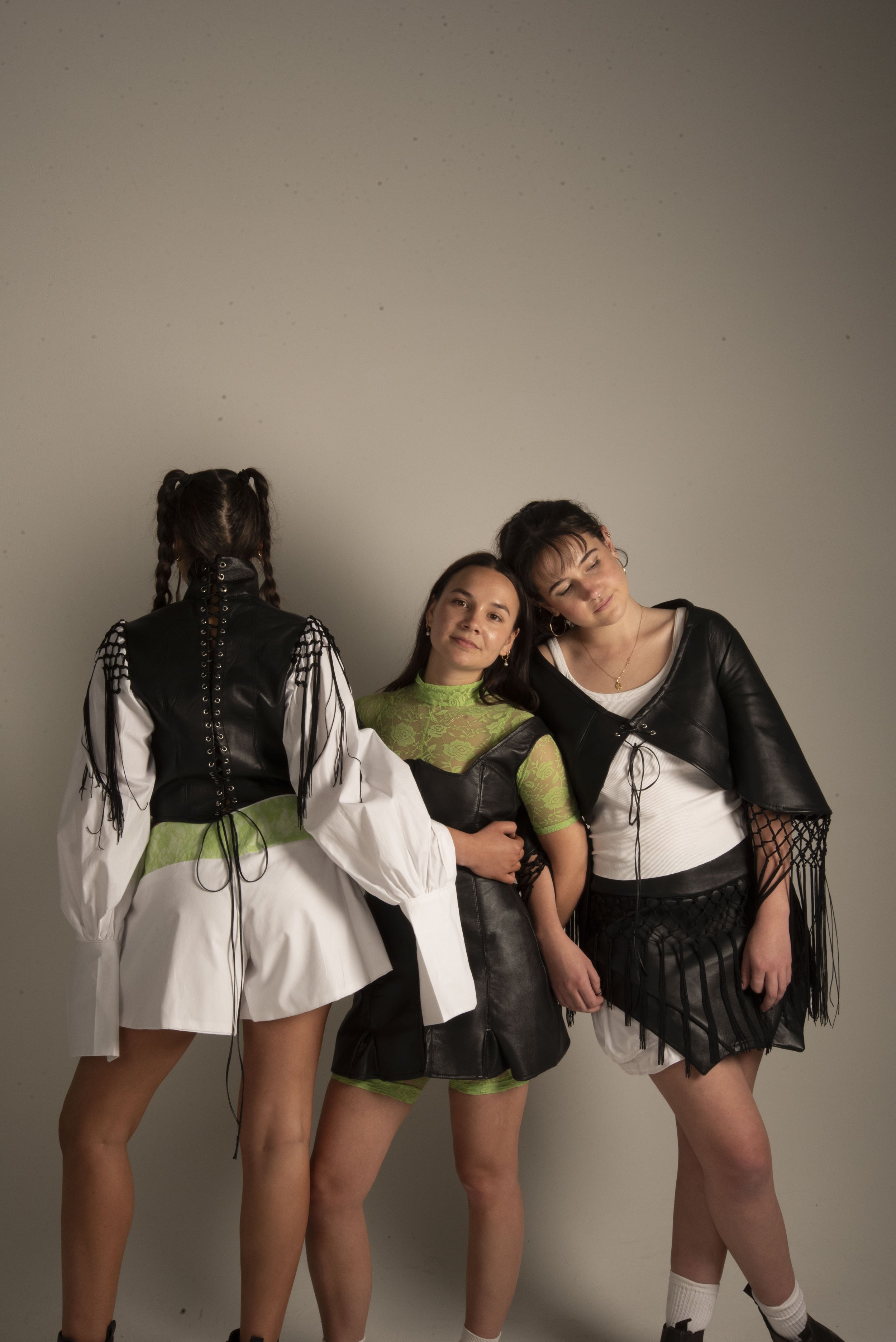 The collection features a carefully curated selection of material: sheepskin leather, organic poplin cotton, and stretch lace, each chosen to enhance the theme of contrast, both texturally and visually. These fabric choices reflect the tension between structure and softness, tradition and modernity.